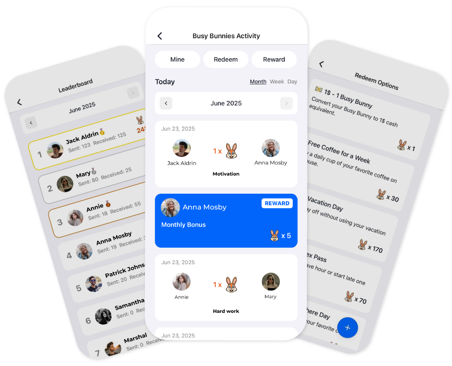 Gamify your workplace culture with a reward system your team will love. Track bunny points, climb the leaderboard, and exchange points for real perks — all while building engagement and motivation.