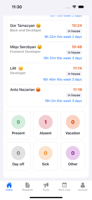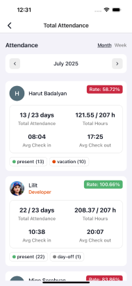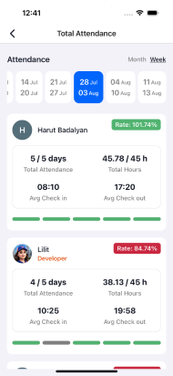 Instant visibility into team activity. Quickly see who is present, absent, or on leave in one click.