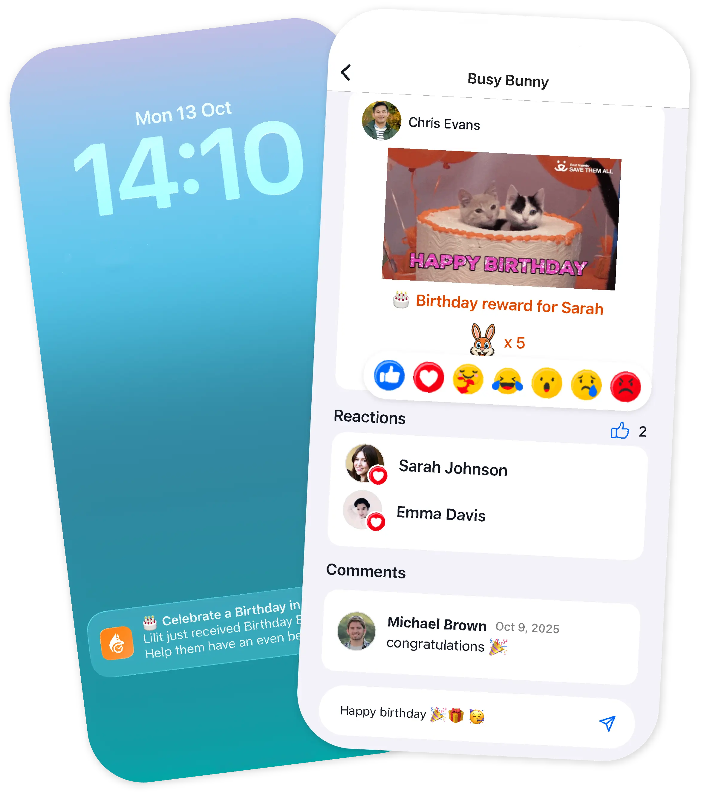 Empower employees to send Busy Bunnies with a message or emoji reaction. It’s lightweight, fun, and boosts social connection in distributed teams.